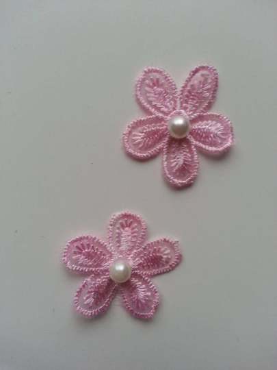 Lot de 2 fleurs en dentelle 30mm rose bonbon