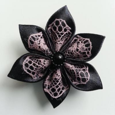 Fleur satin de couleur et dentelle 5cm ronde noir et ivoire