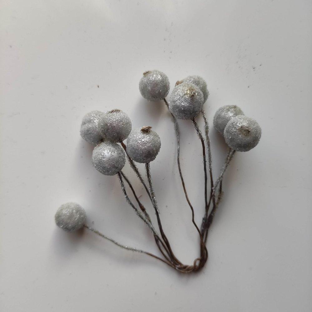 lot de 5 double baies argent givrees sur tige