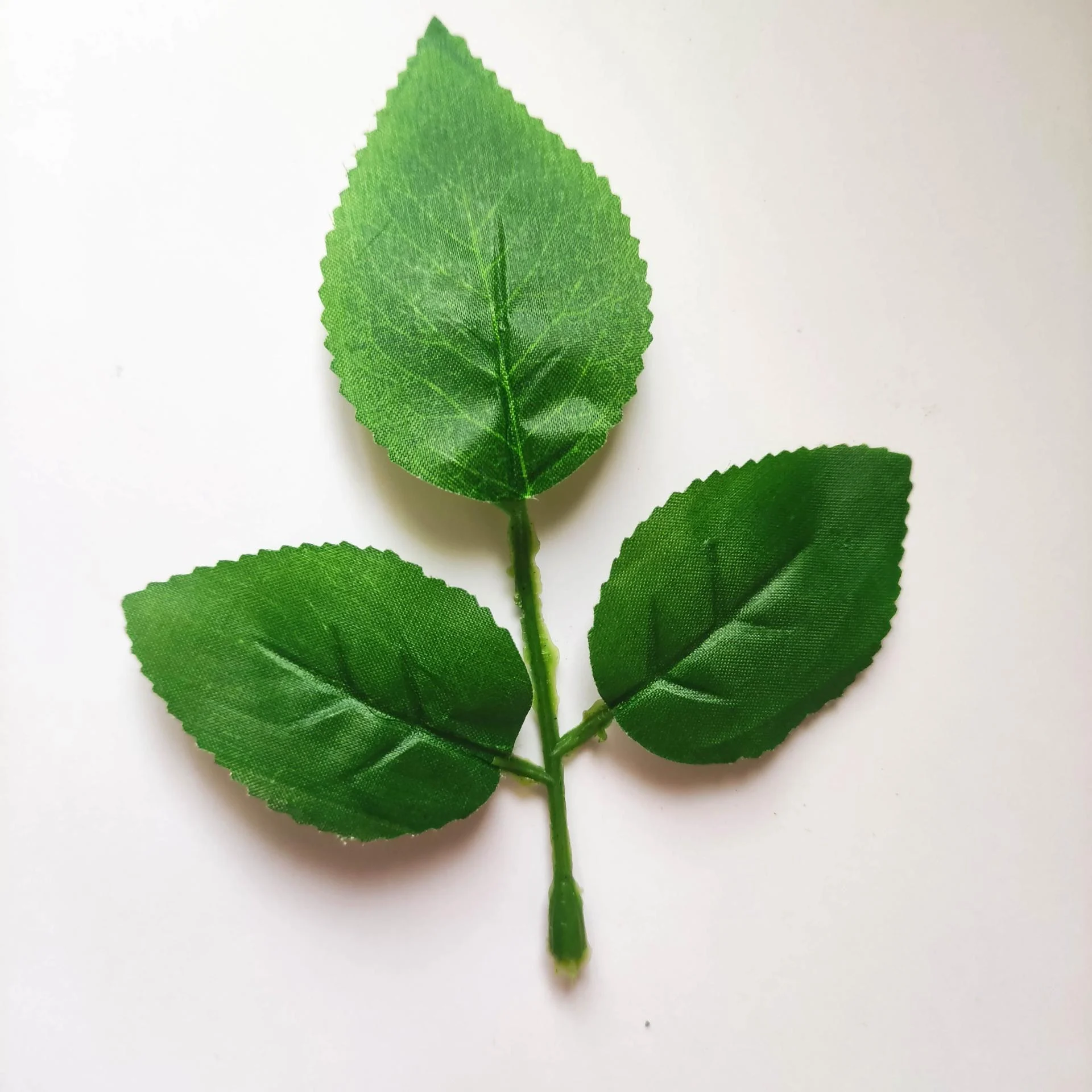 Tige de 3 feuilles artificielles vertes Une tige de 3 feuilles artificielles pour décoration , pour scrapbooking embellissements, composition de fleurs artificielles ,bijoux, décoration , etc.... Taille des feuilles 55*35mm Hauteur et largeur totale 12*12,5cm