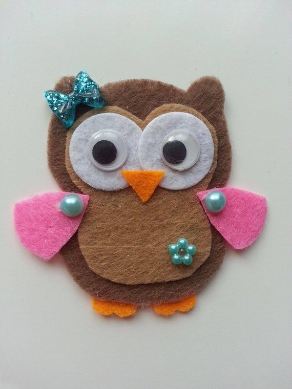 chouette /hibou en feutrine rose et marron 65*65mm