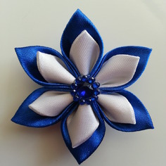 Fleur double en satin bleu marine et blanc 5cm Idéales pour creations de bijoux ou autres Petales...1,30€ TTC