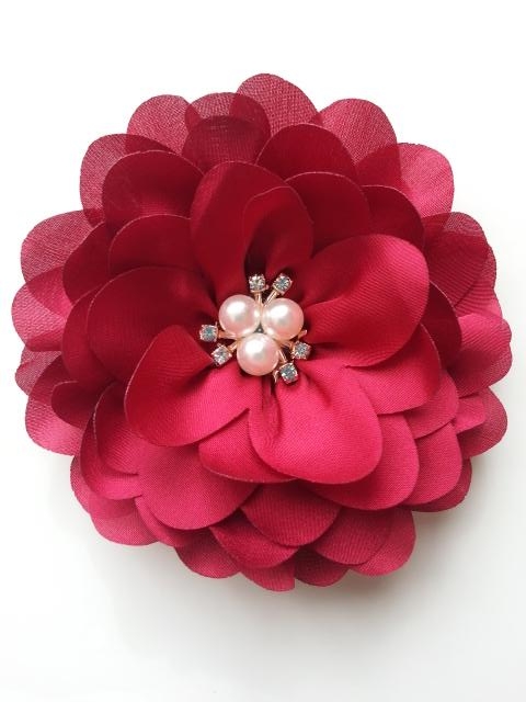 grande fleur en satin de soie centre perle et strass 90mm rouge