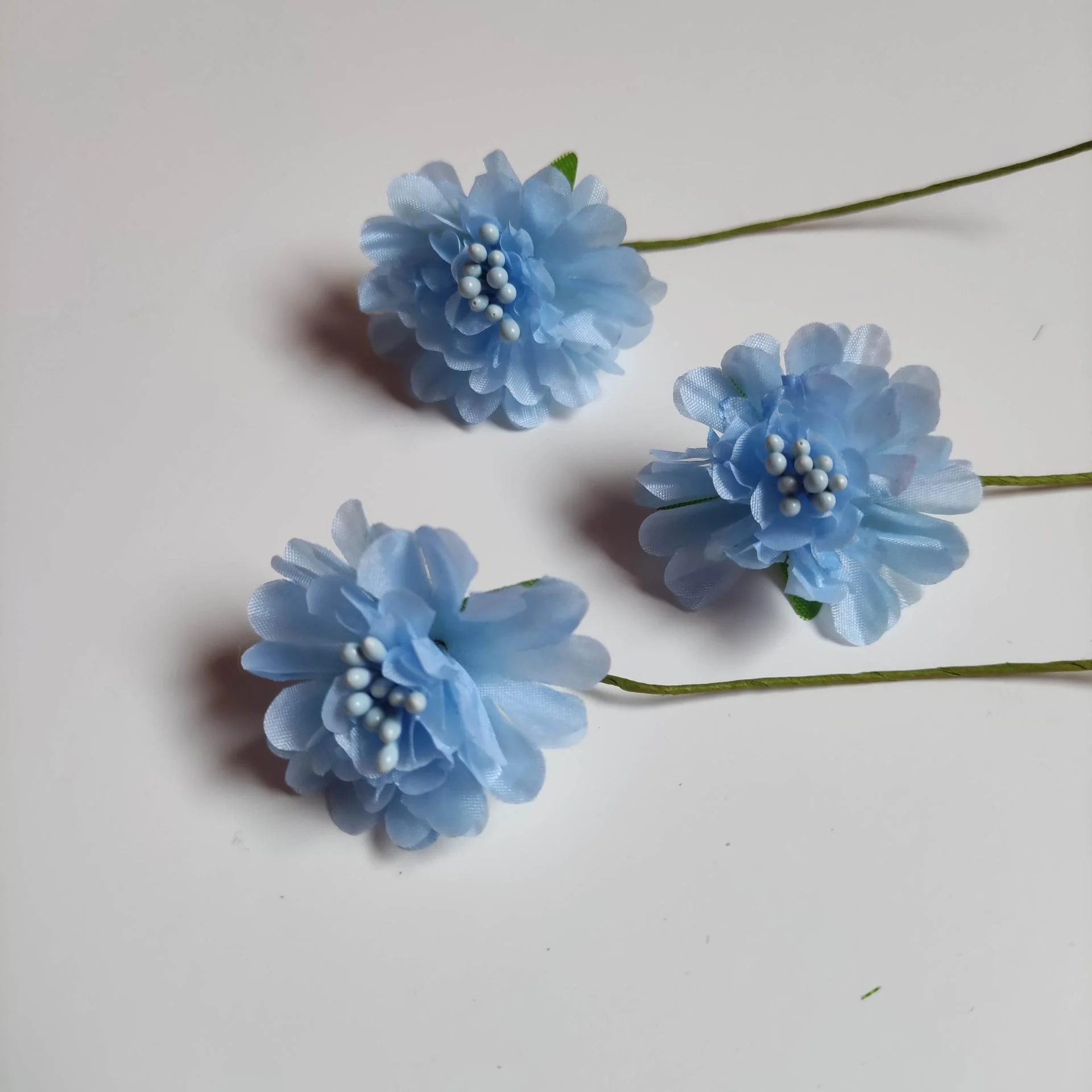 lot de 3 fleurs artificielles en tissu bleu ciel