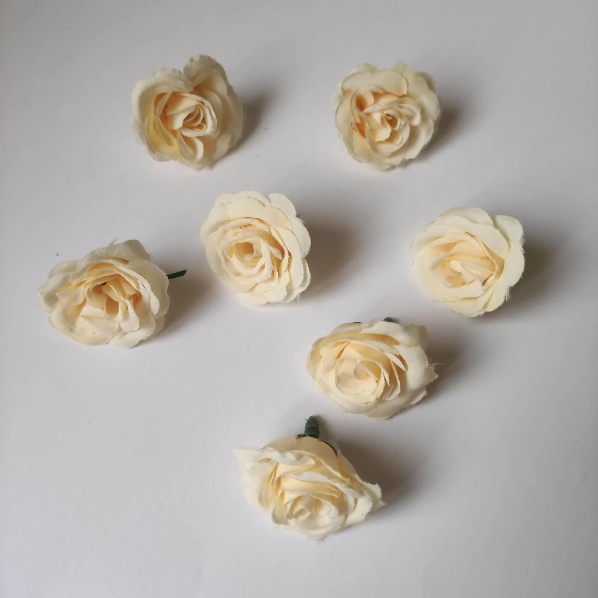 fleur rose tissu ivoire 35mm artificielle 35mm