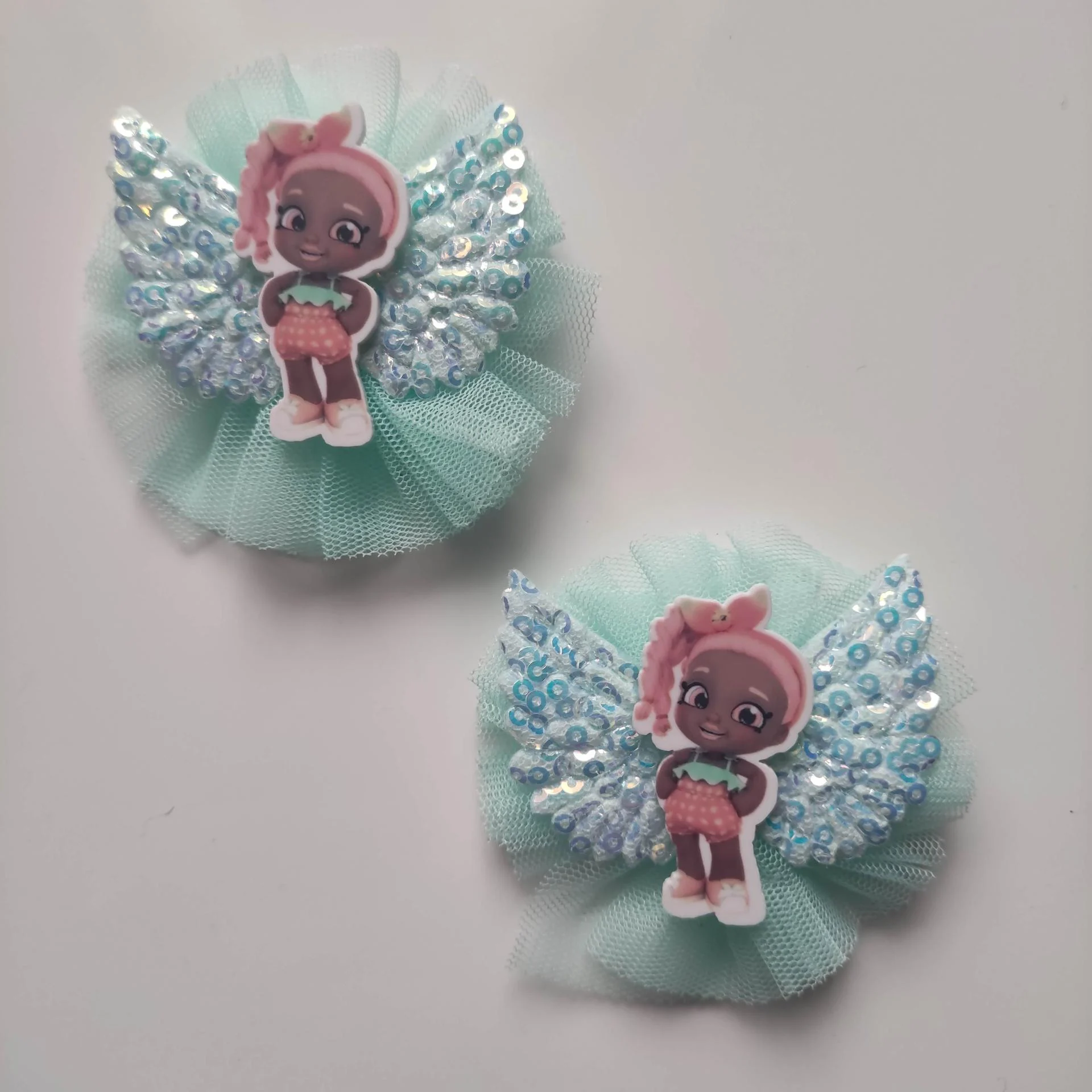 tulle poupée vert noeuds crocodile cheveux fille enfant barrette pêche