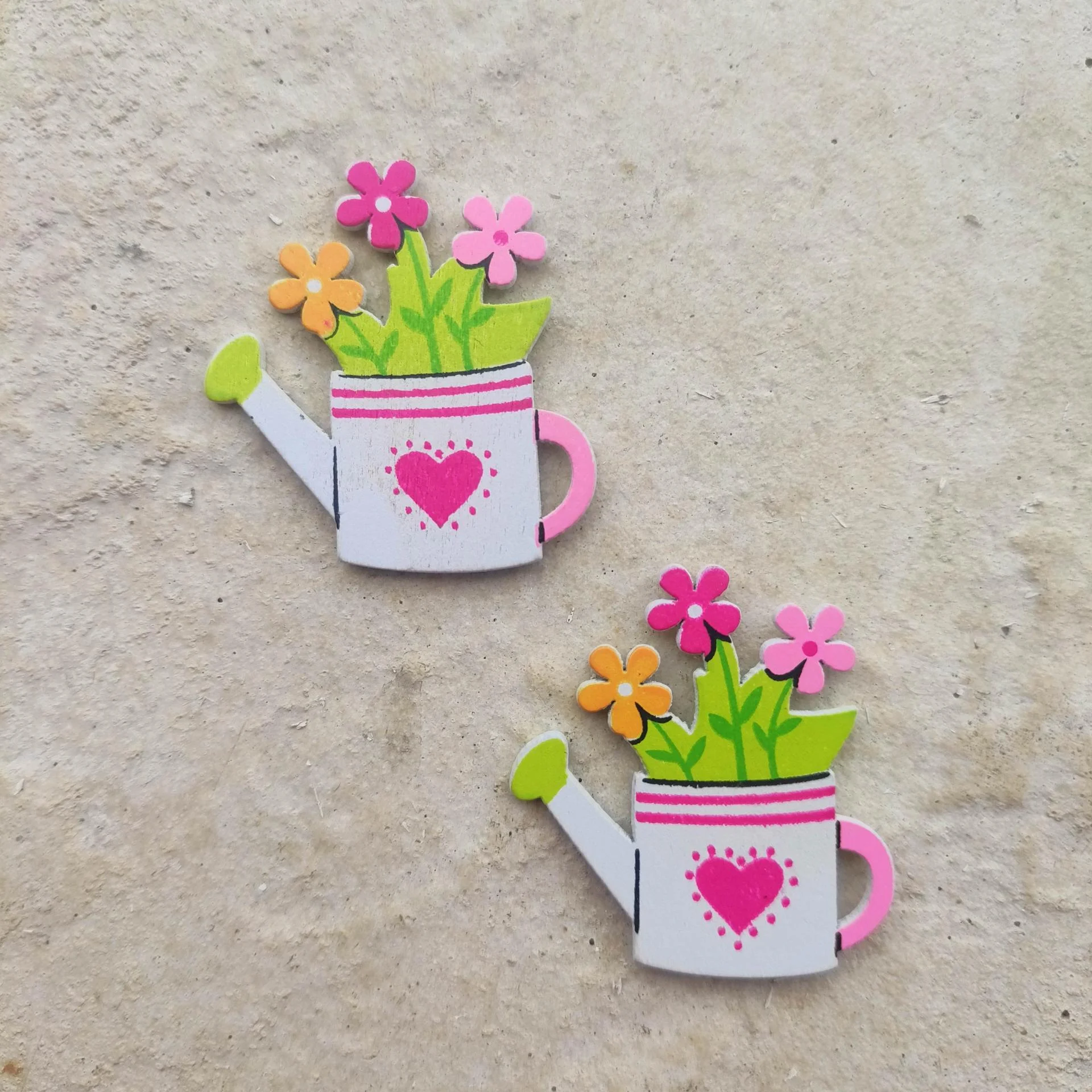 lot de 2 arrosoirq fleurs multicolore et coeur rose en bois 40*40mm