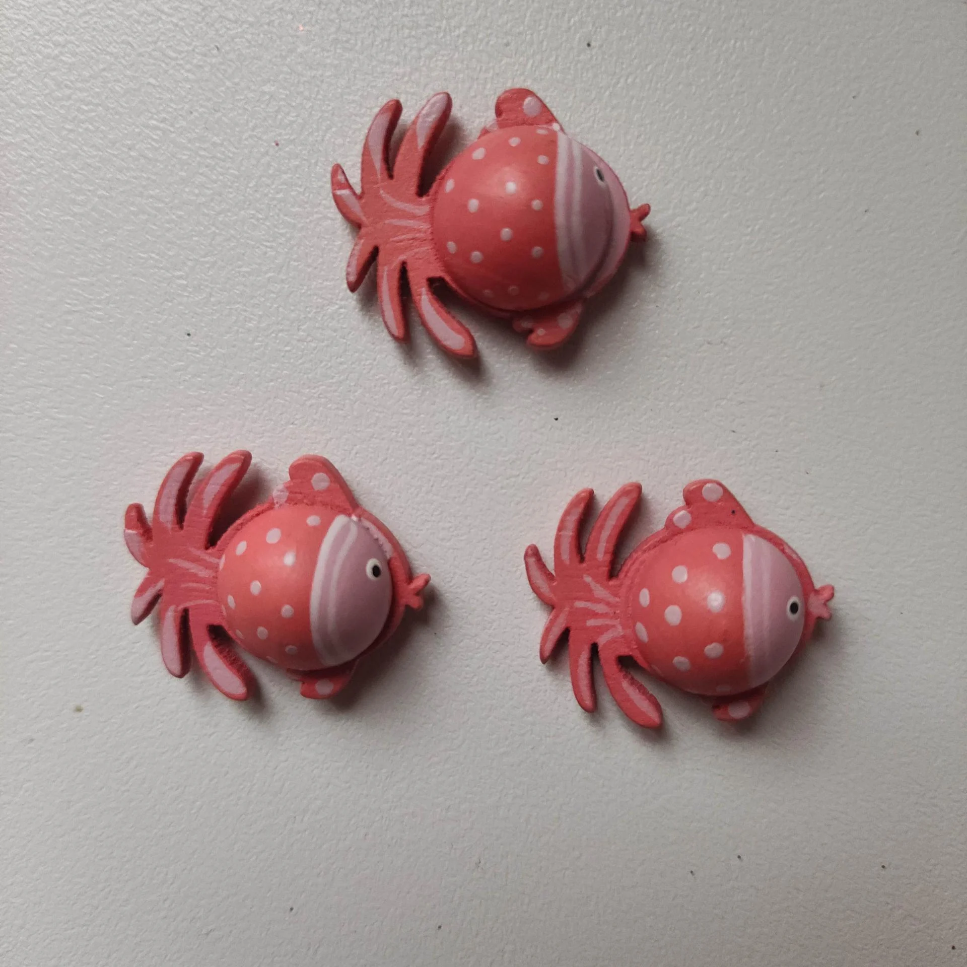 Lot de 3 poissons en bois peche et rose 25*30mm